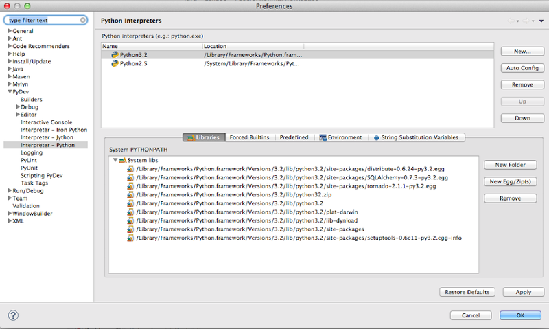 - (追記2012.9.5:Eclipse に Aptana Studio を導入した方が楽です。Aptana Studio に PyDev が含まれています。http://d.hatena.ne.jp/nosix/20120824/1345820790 )